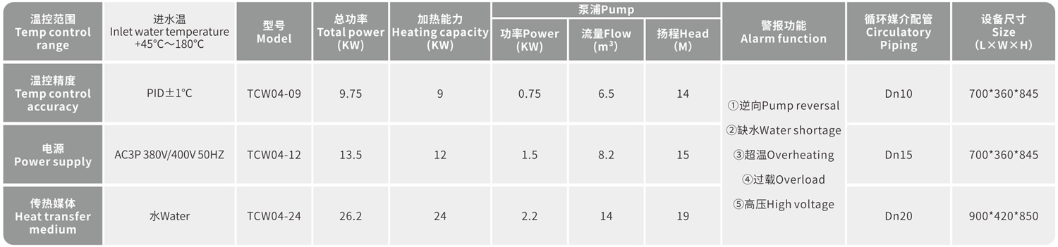 溫度控制范圍:進(jìn)水溫+45°C——180°C